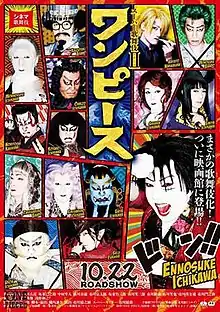 - ↑ "歌舞伎「ワンピース」市川猿之助がルフィ、ハンコック、シャンクスの1人3役" [Kabuki 'One Piece': Ennosuke Ichikawa plays the triple roles of Luffy, Hancock, and Shanks]. コミックナタリー (in Japanese). July 28, 2015. Retrieved 11 December 2023.