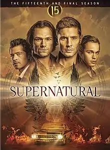 The fifteenth and final season of Supernatural, an American dark fantasy television series created by Eric Kripke, premiered on The CW on October 10, 2019.[1] The series was initially set to conclude on May 18, 2020, but a hiatus occurred after the March 23, 2020, episode owing to production delays caused by the COVID-19 pandemic in the United States.[2] The season resumed airing on October 8, 2020, and the series finale aired on November 19, 2020.[3] The season consisted of 20 episodes and aired on Thursdays at 8:00 pm (ET), with the exception of two March 2020 episodes aired Mondays at 8:00 pm.[4] This was the fourth season with Andrew Dabb and Robert Singer as showrunners. The season follows Sam, Dean, and Castiel's battle against God, who has been manipulating events in their lives including their family, friends, and allies. Angered by their decision to fight him, God jumpstarts the end of everything in creation.