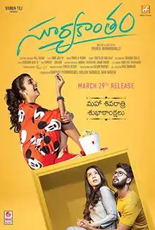 Suryakantham is a 2019 Indian Telugu-language romantic drama film starring Niharika Konidela, Rahul Vijay, and Perlene Bhesania.[3] The film is produced by American-based Yerramreddy and Yarabolu under the banner of Nirvana Cinemas.[4][1]