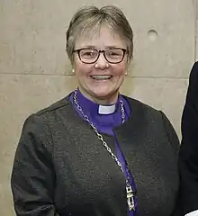 - ↑ "Thoroughly modern minister She is the first woman in charge of a cathedral, skates down the aisles, wraps children in toilet paper, and will be at the centre of attention at Madonna's wedding - oh, and she's a breath of fresh air in the Church o". The Herald. 16 December 2000. Retrieved 3 April 2018.