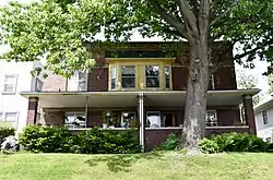 The Susie P. Turner Double House is a historic building located in Des Moines, Iowa, United States. This two-story duplex features a symmetrical facade, brick in various colors, decorative cast stone, and a fullwidth front porch that is supported by three brick columns. Built in 1914, its significance is its combination of Prairie School architecture and American Craftsman styling. At the time it was constructed the double house was still a somewhat uncommon building type in Des Moines.[2] The house was listed on the National Register of Historic Places in 1998.[1]