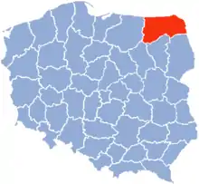 Suwałki Voivodeship (Polish: województwo suwalskie) was an administrative division and local government in Poland from 1975 to 1998. In 1999 the Voidvodeship was divided in half and reassigned to two other Voivodeships – the eastern half to Podlaskie Voivodeship and the western half to Warmian-Masurian Voivodeship.