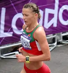 Sviatlana Kouhan (Belarusian: Святлана Коўган, née Klimkovich - Клімковіч; born 26 August 1980 in Nemanitsa) is a Belarusian long-distance runner.[1] She competed in the marathon at the 2012 Summer Olympics, placing 34th with a time of 2:30:26.[2]