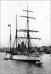 The Philomel-class gunvessel HMS Newport was launched in Wales in 1867. Having become the first ship to pass through the Suez Canal, she was sold in 1881 and renamed Pandora II.[2] She was purchased again in about 1890 and renamed Blencathra,[2] taking part in expeditions to the north coast of Russia. She was bought in 1912 by Georgy Brusilov for use in his ill-fated 1912 Arctic expedition to explore the Northern Sea Route, and was named Svyataya Anna (Russian: Святая Анна), after Saint Anne. The ship became firmly trapped in ice; only two members of the expedition, Valerian Albanov and Alexander Konrad, survived. The ship has never been found.