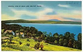 Swan Lake State Park is a public recreation area at the north end of 3-mile-long (4.8 km) Swan Lake in the town of Swanville, Waldo County, Maine. The state park's 67 acres (27 ha) offer opportunities for swimming, picnicking, canoeing, and fishing.[3] The 1,370-acre (550 ha) lake supports populations of smallmouth bass, landlocked salmon, white perch, brook trout, and wild togue.[4] The park is managed by the Maine Department of Agriculture, Conservation and Forestry.