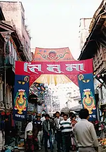 Swanti (Devanagari: स्वन्ति, Nepal Script :𑐳𑑂𑐰𑐣𑑂𑐟𑐶) is a five-day festival of Nepal which is one of the year's greatest celebrations for the Newar people. It is the Newar version of Tihar or Diwali. The festival highlights the central role of women in the household, and the rituals are related to wishing for good fortune of the family members by presenting them auspicious items and praying for longevity by placating the god of death.[1][2]