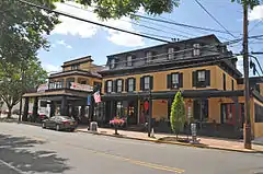 Swedesboro, initially named Sveaborg by the Swedish settlers, along with Bridgeport (Nya Stockholm) and Finns Point (Varkens Kill), was one of only three settlements established in New Jersey as a part of the New Sweden colony. The oldest extant log cabin in the U.S., C. A. Nothnagle Log House (c.1640) was built by Antti Niilonpoika (Anthony Neilson/Nelson) in Swedesboro.[28] It is listed on the National Register of Historic Places, as is Trinity Episcopal "Old Swedes" Church, which was established as a Swedish Lutheran Church in 1703; the present building dates to 1784.[29]