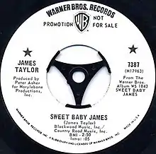 "Sweet Baby James" is a song written and recorded by James Taylor that serves as the opening and title track from his 1970 breakthrough album Sweet Baby James. It was released as the first single from the album but did not chart.[2][3] Nonetheless, it is one of his best-known and most popular tunes.[4] Taylor considers it his best song.[5][6]