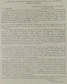 Picot was informed and five days later Cambon told Nicolson that "the French government were in accord with the proposals concerning the Arab question".[33]