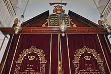 The entrance to the original building was on Synagogue Lane, now Serfaty's Passage. Following its destruction in the storm of 30 December 1766, a larger synagogue was rebuilt at the same site in 1768, but with an entrance on Engineer Lane. The second building was also destroyed during attacks by the Spanish on 17 May 1781. A third building was constructed after the conclusion of the Great Siege of Gibraltar. In 1812, that version of the synagogue was damaged by fire and had to be partially rebuilt. The current vaulted ceiling of the synagogue dates from that 1812 renovation.[3][4] The synagogue at 47/49 Engineer Lane has colourful tiles, marble floors, wrought iron spindles, and wooden furniture.[2] The Great Synagogue not only remains active; it is still Gibraltar's principal synagogue.[4][12]