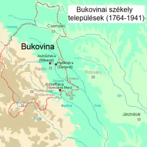The Székelys of Bukovina are a small Hungarian ethnic community with a complex history. They live today in the Tolna and Baranya counties of Hungary, in Hunedoara County, Transylvania[1] and Suceava County, Bukovina, both in Romania as well as in the Serbian province of Vojvodina.
