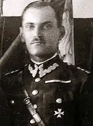 Anders remained at the 4th Mounted Artillery Division in Suwałki until the beginning of the September Campaign, where the 4th Mounted Artillery Division was incorporated in situ into the Cavalry Brigade "Edward".[7] Apart from the 4th Mounted Artillery Division, Cavalry Brigade "Edward" also consisted of the 3rd Masovian Light Cavalry Regiment, the 3rd Mounted Infantry Regiment, and the 1st Uhlan Regiment, which was commanded by Tadeusz's older brother, Karol Anders, who then held the rank of podpułkownik (Lieutenant Colonel). The brigade was tasked with the protection of the defensive corridor formed between the Suwałki and Lublin regions. During the September Campaign, the brigade retreated south to protect the Romanian Bridgehead. Both Anders brothers, along with the rest of brigade, participated in the Battle of Kock.