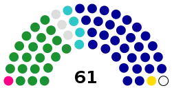 Taipei City Council (Chinese: 台北市議會; pinyin: Táiběishì Yìhuì) is the city council of Taipei, Taiwan. One of the largest local councils in Taiwan, the city council is currently composed of 61 councillors, all elected lately in the 2022 Taiwanese local elections.[2]