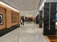 The hotel is seven stories high with a 45,000 sq ft blue glass facade and has 220 rooms including 16 suites.[5][6] These include 38 superior rooms, 107 deluxe rooms, 59 premium rooms, nine executive suites (500 sq ft), six deluxe suites (662 sq ft) and a presidential suite (3,500 sq ft). The 3,300-sq ft banqueting hall on the ground floor, The Summit, can hold up to 400 guests. There are two meetings rooms with a maximum capacity of 30 and a boardroom for up to 12 people on the sixth floor.[7]