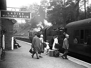 ![]() Changing trains at Talyllyn, shortly before the line closed | |