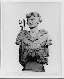 Front view of the original wooden figurehead of Tamanend, 1929