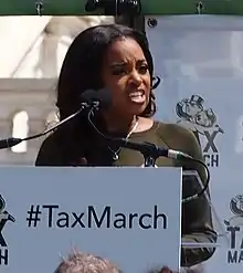 Tamika Danielle Mallory (born September 4, 1980[1]) is an American activist. She was one of the leading organizers of the 2017 Women's March, for which she and her three other co-chairs were recognized in the TIME 100 that year.[3][4] She received the Coretta Scott King Legacy Award from the Coretta Scott King Center for Cultural and Intellectual Freedom in 2018.[5] Mallory is a proponent of gun control, feminism, and the Black Lives Matter movement.