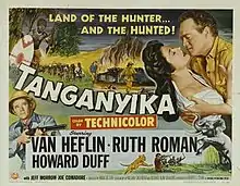 Tanganyika is a 1954 American Technicolor action adventure film directed by Andre de Toth and starring Van Heflin, Ruth Roman and Howard Duff.[1][2] It was produced and distributed by Universal Pictures.