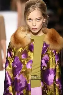 Shortly after, Diagileva was announced as one of the season's most wanted models.[8] She was selected as one of the top newcomers of the season by models.com.[10] During the spring 2008 season, she walked in 74 fashion shows opening the Versace show and closing four shows including Phillip Lim, Celine, and Valentino. In September 2008, Dziahileva was featured in Women's Wear Daily (WWD) as an up-and-coming model to become a supermodel.[9] Also known as Tanya D, she was named one of the most popular top models by Fashion TV.[8][11] In 2007,[7] she participated in nearly 150 fashion shows across the globe. Since her first major season (spring 2006), Dziahileva has walked the runway in ready-to-wear fashion shows and graced on the haute-couture catwalks for numerous world's top designers, including Chanel, Oscar de la Renta, Dior, Hermès, Alexander McQueen, Jean Paul Gaultier, Missoni, Versace, Prada, Donna Karan, and Calvin Klein.[1][8]