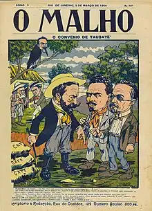 In February 1906, the governors of the states of Minas Gerais (Francisco Antônio de Sales), São Paulo (Jorge Tibiriçá Piratininga) and Rio de Janeiro (Nilo Procópio Peçanha, later replaced by Alfredo Backer), met in Taubaté and as a result, on the ninth day of that month, signed an agreement that laid the foundations for a joint policy to value coffee, subject to approval by the President of the Republic.[1][2]
