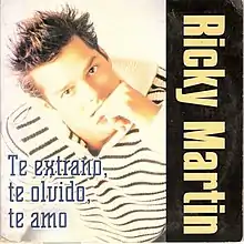 "Te Extraño, Te Olvido, Te Amo" (transl. "I Miss You, I Forget You, I Love You") is a song recorded by Puerto Rican singer Ricky Martin for his third studio album, A Medio Vivir (1995). The song was written by Carlos Lara, while the production was handled by K.C. Porter. It was released to radio stations and on CD by Columbia Records as the lead single from the album on September 5, 1995. A Spanish language soft ballad, it is about the singer's dream woman who has left him and as he struggles to forget her, he becomes depressed. It received widely positive reviews from music critics, who ranked it among Martin's best ballads.