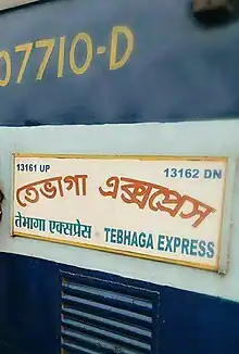 Tebhaga Express is an Express train belonging to Eastern Railway Zone that runs between Kolkata and Balurghat.