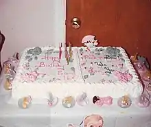 "Happy Birthday Sweet 16" / "Pink or Blue, We Love You" cake