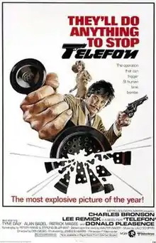 Telefon is a 1977 spy film directed by Don Siegel and starring Charles Bronson, Lee Remick and Donald Pleasence.[1] The screenplay by Peter Hyams and Stirling Silliphant is based on the 1975 novel by Walter Wager.