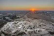 Tells are most commonly associated with the ancient Near East but they are also found elsewhere, such as Southern and parts of Central Europe, from Greece and Bulgaria to Hungary and Spain[6][7] and in North Africa.[3][8][9][10] Within the Near East they are concentrated in less arid regions, including Upper Mesopotamia, the Southern Levant, Anatolia and Iran, which had more continuous settlement.[11] Eurasian tells date to the Neolithic,[12] the Chalcolithic and the Bronze and Iron Ages.[13] In the Southern Levant the time of the tells ended with the conquest by Alexander the Great, which ushered in the Hellenistic period with its own, different settlement-building patterns. Many tells across the Near East continue to be occupied and used today.[14]