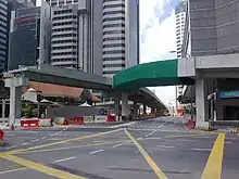 During the station's construction, a temporary viaduct was built along Cross Street.[11] The two-lane 407-metre (1,335 ft) bridge, which ran between Central Boulevard and China Street, was constructed to replace the closed lanes that had to make way for the station's construction.[14][15][16] Work on the viaduct began on 3 February 2008[14] and it opened for traffic on 28 December that year.[17][18] Three subsequent ramps to the viaduct were opened over the course from February to April 2009.[19][20][21]