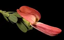 Templetonia retusa, known as cockies tongues,[2] cocky's tongues,[3] or coral bush[4] is a shrub in the family Fabaceae (Leguminosae) that grows in southern and south-western Australia. It grows up to 2 metres (6 ft 7 in) high, with leaves 15–40 millimetres (0.6–1.6 in) long and 7–25 mm (0.3–1.0 in) wide.[3] Its flowers are normally a rich red colour, and are 25–40 mm (1.0–1.6 in) long. The seed pods are 40–50 mm (1.6–2.0 in) long and around 10 mm (0.4 in) wide.[3] It is found in coastal woodland and heaths over limestone from Shark Bay, Western Australia, to near Kangaroo Island, as well as inland in the Flinders Ranges of South Australia.[3]