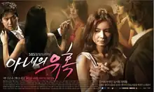 Temptation of Wife (Korean: 아내의 유혹; RR: Anaeui Yuhok), also called Lure of Wife, is South Korean television series starring Jang Seo-hee, Byun Woo-min, Kim Seo-hyung and Lee Jae-hwang. It aired on SBS TV every Mondays to Fridays at 19:20 from November 3, 2008, to May 1, 2009, for 129 episodes. Temptation of Wife was a highly watched drama in South Korea. Despite many controversies concerning the questionable content of the drama, it remains one of the most viewed dramas with a daily average viewership of around 30%, and netted the cast several awards including the Daesang (Grand Prize) for lead actress Jang Seo Hee at the SBS Drama Awards.[2][3][4]