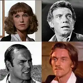 Clockwise, from top left: Daria Nicolodi, Anthony Franciosa, John Steiner, John Saxon