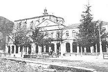 There is hardly any information available on Arana's fate following the Nationalist takeover of Guernica in 1937. He is not listed as taking part in any public events or as member of any structures. In a single case, in 1944 he was noted in the press as donating money to a religious cause.[141] His passing away was acknowledged by numerous newspapers, also the Falangist ones;[142] in obituary notes he was referred to – with respect though not any particular reverence – as a former Traditionalist leader in Biscay and one of great provincial figures, decorated by the pope with Great Cross of Pontificial Equestrian Order of Saint Sylvester.[143] The Nere Kabia palace has not been rebuilt, and today merely the street name marks the place where it used to stand, though at least until the late 20th century numerous plots and estates in the neighborhood still remained in hands of Arana's descendants.[144]