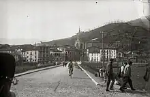 As he could pay less attention to politics, Arana focused on his family economy. At some point he purchased 75 hectares in Ereño, a municipality close to Guernica.[122] He also intended to build a 4-floor health resort at Playa de Laga (Ibarranguelu), where he had earlier bought a plot of some 7 hectares,[123] but these plans eventually came to naught. However, despite his earlier zealous engagement in support of the Basque cause and despite his role of co-founder of Sociedad de Estudios Vascos, the 1926 publication did not list him among socios de número.[124] It was only in 1930, when the dictatorship crumbled and major change was widely anticipated, that SEV included him in the long list of members consulted over an autonomy plan; he responded that restoration of the foral system should be the ultimate objective, though autonomy was acceptable given it "respects historical rights".[125]