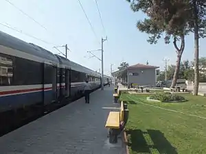 Tepeköy railway station is a railway station in Torbalı and is the southern terminus of the İZBAN Southern Line. The station was originally opened on 14 November 1861 by the Oriental Railway Company. Between 2015 and 2016, Tepeköy was rebuilt and expanded from a one track station to three tracks to service commuter trains to and from Alsancak Terminal in Izmir.
