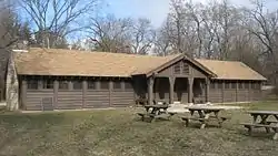 Tepicon Hall is a historic dining hall located at Tippecanoe River State Park in Franklin Township, Pulaski County, Indiana. It was built about 1938 by the Works Progress Administration and is nearly all that remains of Camp Tepicon. It is a one-story, T-shaped, rustic timber-frame building with a gable roof. It is sheathed in clapboard siding and board-and-batten siding on the gable ends.[2]:2