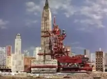 The episode features a disastrous attempt to relocate the Empire State Building using a giant cradle. The scale model of the building has drawn a mixed response for its craftsmanship.[1][2] One commentator has called the atomic-powered nature of the cradle an example of Thunderbirds' "preoccupation" with nuclear technology.[3]