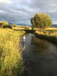 The Teton River is a 64-mile-long (103 km)[2] tributary of the Henrys Fork of the Snake River in southeastern Idaho in the United States. It drains through the Teton Valley along the west side of the Teton Range along the Idaho-Wyoming border at the eastern end of the Snake River Plain. Its location along the western flank of the Tetons provides the river with more rainfall than many other rivers of the region.