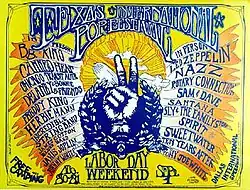 Artists performing at the festival were: Canned Heat, Chicago (then called Chicago Transit Authority), the James Cotton (Blues Band), Delaney and Bonnie and Friends, Grand Funk Railroad, The Incredible String Band, Janis Joplin, B.B. King, Freddie King, Led Zeppelin, Herbie Mann, Nazz, Rotary Connection, Sam and Dave, Santana, John Sebastian, Shiva's Headband, Sly and the Family Stone, Space Opera, Spirit, Sweetwater, Ten Years After, Tony Joe White and Johnny Winter.[2][3]