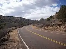 PR 3's 1.2-mile (1.9 km)[1] main road begins at SH 118. Immediately after the intersection, PR 3 divides into two one-way roadways separated by the park headquarters and reuniting just beyond.[3] The road then continues westward through Keesey Canyon one-half mile (0.8 km) passing a couple of small hiking trails to the intersection with PR 3A. Beyond PR 3A, several drives branch off as loops accessing campsites, staff residences, and other park facilities. The road makes a sharp curve and a steep upward grade before ending at Indian Lodge 1.2-mile (1.9 km) west of the intersection with PR 3A.[3][4]
