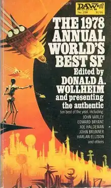 The 1978 Annual World's Best SF is an anthology of science fiction short stories edited by Donald A. Wollheim and Arthur W. Saha, the seventh volume in a series of nineteen. It was first published in paperback by DAW Books in May 1978, followed by a hardcover edition issued in August of the same year by the same publisher as a selection of the Science Fiction Book Club. For the hardcover edition the original cover art of Jack Gaughan was replaced by a new cover painting by Richard Powers. The paperback edition was reissued by DAW in 1983 under the variant title Wollheim's World's Best SF: Series Seven, this time with cover art by Graham Wildridge. A British hardcover edition was published by Dennis Dobson in May 1980 under the variant title The World's Best SF 5.