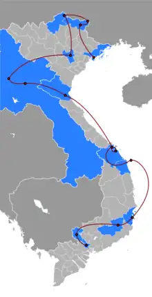 - ↑ "Các đội chơi Cuộc đua kỳ thú tranh tài tại Lào" [The Amazing Race teams competing in Laos]. Zing.vn (in Vietnamese). 12 August 2015. Retrieved 19 January 2020.