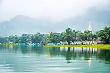 3. ^ As both Lệ Hằng & H'Hen Niê and Quốc Thiên & Anh Quân could not row across the lake as part of the Detour, their teams were both issued a 2-hour penalty at the site and had to hold heavy logs on their shoulders while waiting out their penalty.
