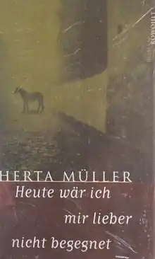 The Appointment (German: Heute wär ich mir lieber nicht begegnet, lit. 'I would have rather not met myself today') is a novel by German author Herta Müller. The novel was originally published in German in 1997 and later in English by Metropolitan Books and Picador, a Macmillan imprint, in 2001. The novel was one of several for which Müller was known when she received the Nobel Prize in Literature in 2009.[1] The Appointment portrays the humiliations of Communist Romania, told from the perspective of a young woman working as a clothing-factory worker who has been summoned by the secret police. She is accused of sewing notes into the linings of men's suits bound for Italy asking that the recipient marry her to help her get out of the country.[2]