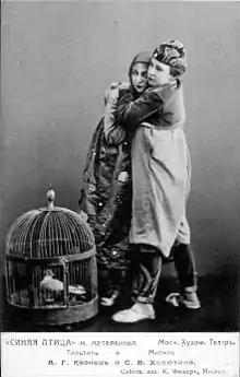 The Blue Bird is also 1910 silent film, based on the play by Maurice Maeterlinck and starring Pauline Gilmer as Mytyl and Olive Walter as Tytyl. It was filmed in England. The original Broadway production of The Blue Bird or L'Oiseau Bleu by Maurice Maeterlinck opened at the New Theatre in New York (followed by the Majestic Theater) on October 1, 1910, and closed on January 21, 1911. Revivals were produced in 1911 and 1924.[45][46]