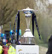 The Boat Race is an annual rowing eight competition between the University of Oxford and the University of Cambridge. First held in 1829, the competition is a 4.2-mile (6.8 km) race along The Championship Course on the River Thames in southwest London.[1] The rivalry is a major point of honour between the two universities and followed throughout the United Kingdom and worldwide.[2] Oxford went into the race as reigning champions, having beaten Cambridge by 1+1⁄2 lengths in the previous year's race. However Cambridge held the overall lead, with 81 victories to Oxford's 77 (excluding the "dead heat" of 1877).[3]