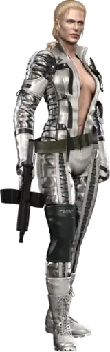 The Boss appears as one of the main antagonists in Metal Gear Solid 3: Snake Eater. She moved to the Soviet Union with Colonel Volgin alongside the Cobra Unit.[5] Throughout the game, Naked Snake repeatedly encounters The Boss to kill her as ordered by his superiors. Following Volgin's death, The Boss reveals she is the daughter of one of the original members of the Philosophers behind the Philosophers' Legacy. After one final fight, Snake fights and kills The Boss who gives him the Philosophers' Legacy hidden by Volgin. The whole mission is later revealed to be a coverup by the United States so that The Boss would steal Volgin's treasure and give it to Snake but then die at his hands to avoid a conflict between America and the Soviet Union.[6][7]