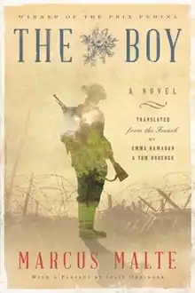 The Boy (French: Le Garçon) is a 2016 literary fiction novel by French author Marcus Malte, originally published by Éditions Zulma. It was translated by Emma Ramadan and Tom Roberge and was published in English, in 2019, by Restless Books.[1] The novel follows a nameless feral boy, who travels from Eastern Europe to numerous civilizations in France. On the boy's journey, he becomes entangled in World War 1 and suffers from the loss of loved ones, as well as PTSD from the trench warfare.[1] The novel received two awards following its publication.[2][3]