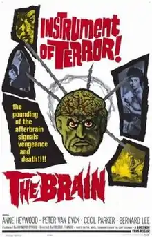 The Brain, also known as Vengeance and Ein Toter sucht seinen Mörder, is a 1962 UK-West German co-production science fiction thriller film directed by Freddie Francis, and starring Anne Heywood and Peter van Eyck.[1] It is adapted from the 1942 Curt Siodmak novel Donovan's Brain, and in this film, differing from earlier adaptations, the dead man seeks his murderer through hypnotic contact with the doctor keeping his brain alive.